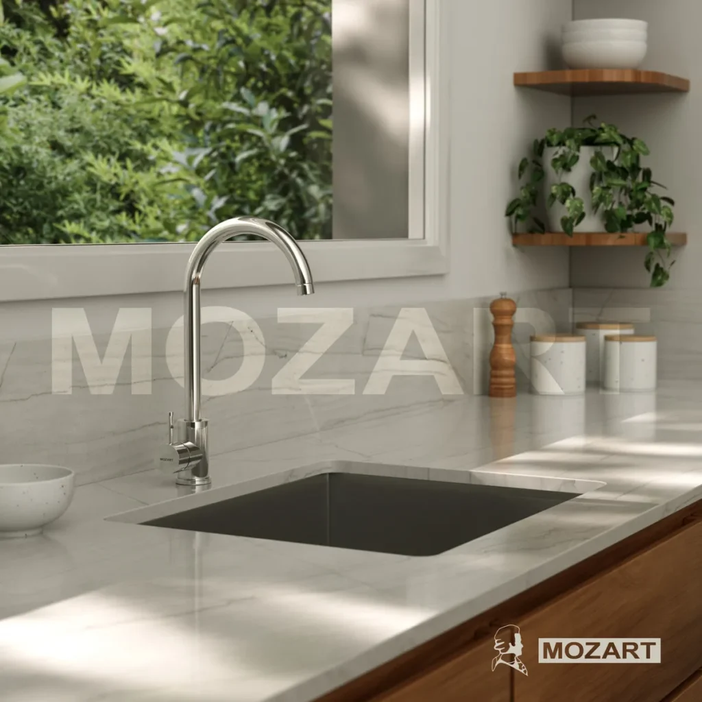 Grifería Cocina Canilla Monocomando Mozart Moscú Premium Color Cromado Para Mesada 7118