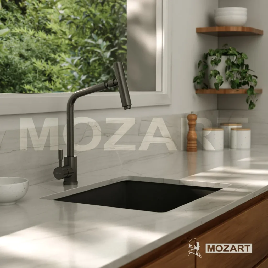 Grifería Cocina Canilla Monocomando Mozart Roma Premium Pico Movible 360° Color Negro 7107