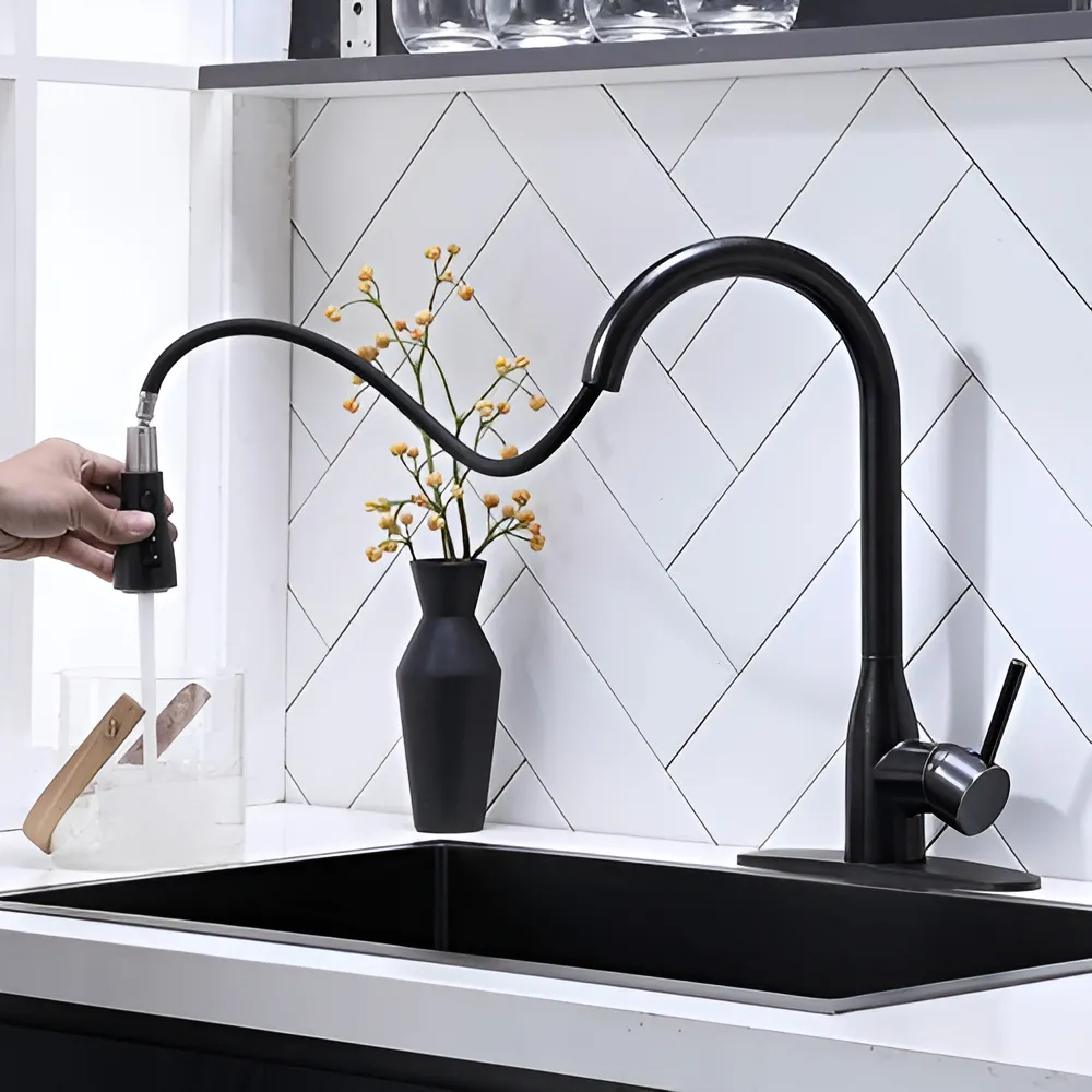 Grifería Cocina Canilla Monocomando Mozart Singapur Premium Rociador Extraíble Color Negro 7390