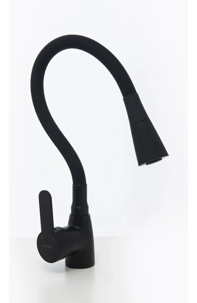 Grifería Cocina Canilla Monocomando Mozart Seúl Premium Flexible Pico Cono Color Negro 8321