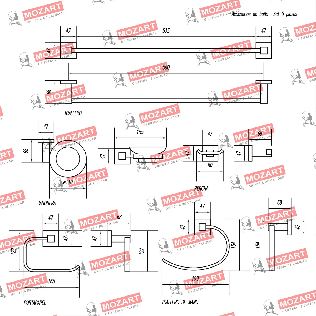 Sé el primero en valorar “Kit Accesorio Baño Acero Inoxidable 5 Piezas Mozart Panamá Color Negro 9320”