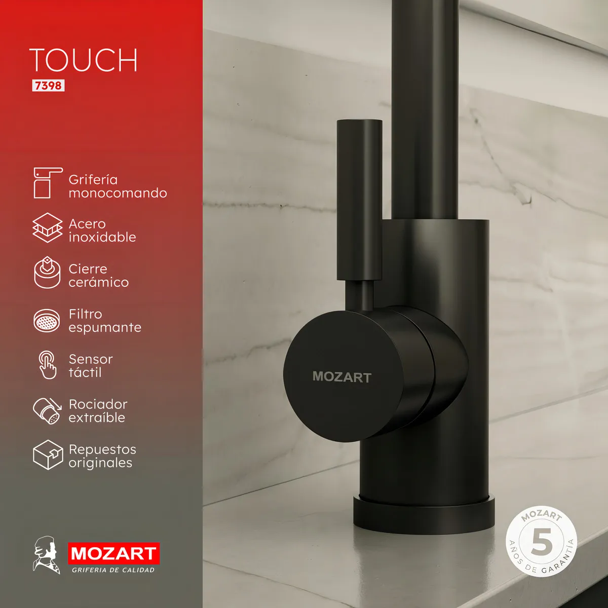 Grifería Cocina Canilla Monocomando Mozart Touch Premium Sobre Mesada Color Negro 7398