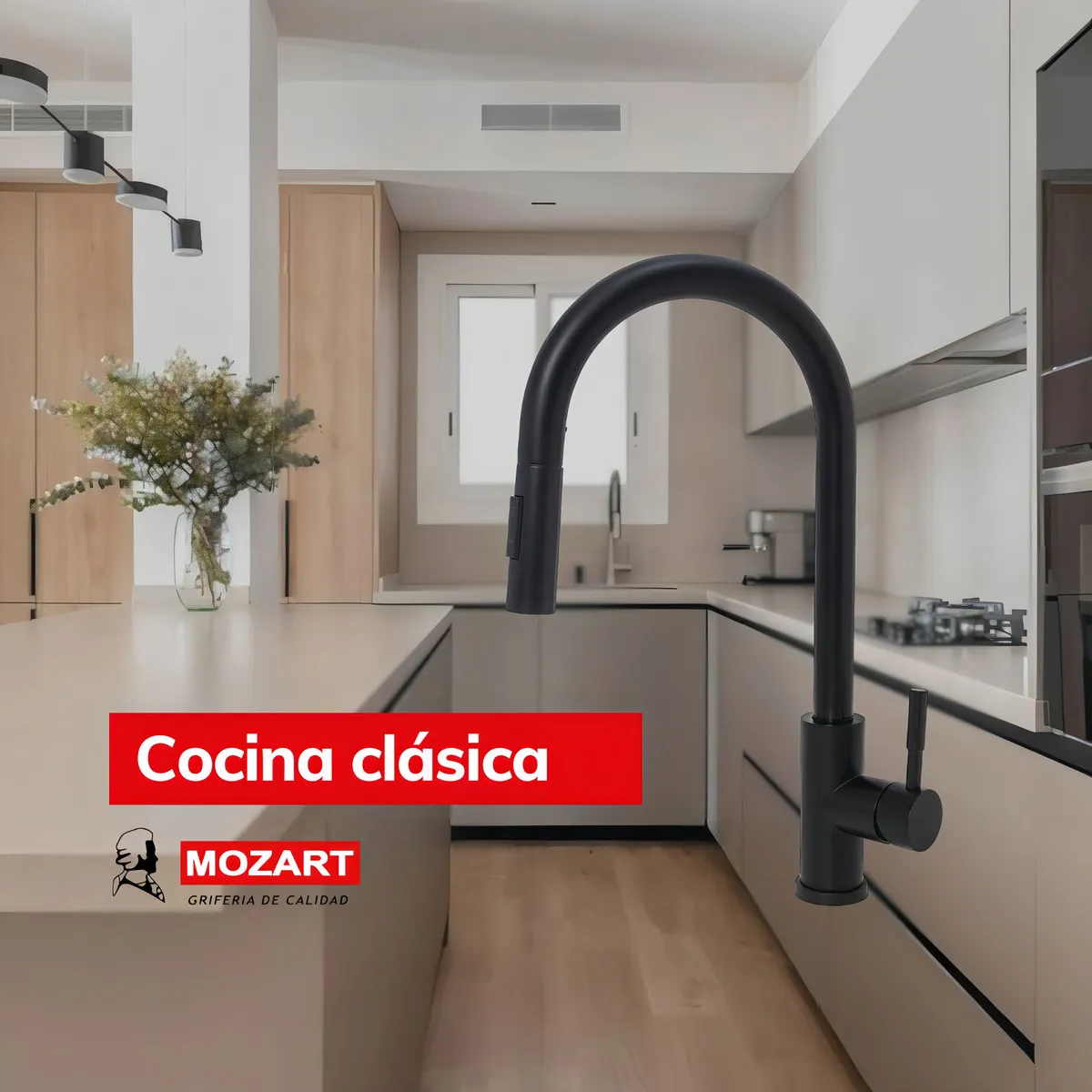 La grifería Mozart para cocina modelo Touch de la línea Premium sobre mesada, en color negro, es una opción de diseño elegante y funcionalidad avanzada. Este modelo monocomando cuenta con tecnología táctil, lo que permite encender y apagar el flujo de agua con solo un toque, brindando mayor comodidad y evitando el contacto directo con la grifería, lo que mejora la higiene en la cocina. El acabado en color negro le otorga un estilo sofisticado y moderno, perfecto para cocinas contemporáneas que buscan un toque de distinción. Además, su diseño sobre mesada es ideal para facilitar el uso diario, con una estructura robusta y resistente. La línea Premium asegura durabilidad y un rendimiento superior, convirtiéndola en una excelente opción para quienes buscan calidad, tecnología y diseño en su grifería.