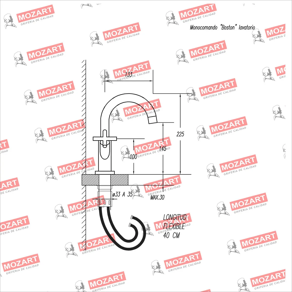 La grifería Mozart para lavatorio modelo Boston, de doble comando con pico tipo «J» y acabado negro, es una opción sofisticada y funcional para tu baño. Su diseño de doble comando permite un control preciso de la temperatura y el caudal del agua, brindando una experiencia cómoda y eficiente. El pico tipo «J» asegura un flujo adecuado y suave de agua, ideal para el uso diario. El elegante acabado negro aporta un toque moderno y contemporáneo, destacándose en cualquier ambiente. Esta grifería combina perfectamente estilo y durabilidad, siendo una excelente elección para baños de diseño minimalista o industrial.