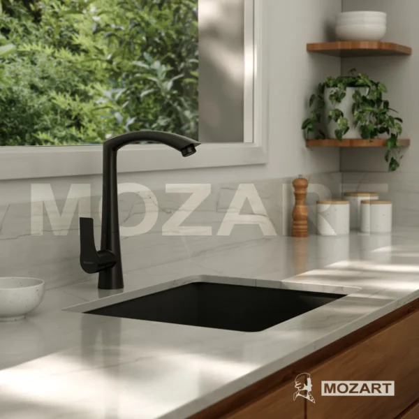 Grifería cocina canilla monocomando Mozart Moscú premium para mesada color negro 7117