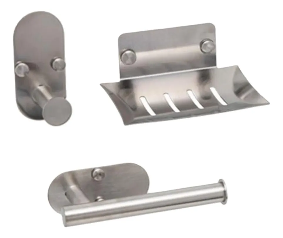 Kit Accesorios Set De Baño Acero Inoxidable 3 Piezas Mozart London Color Acero 9200
