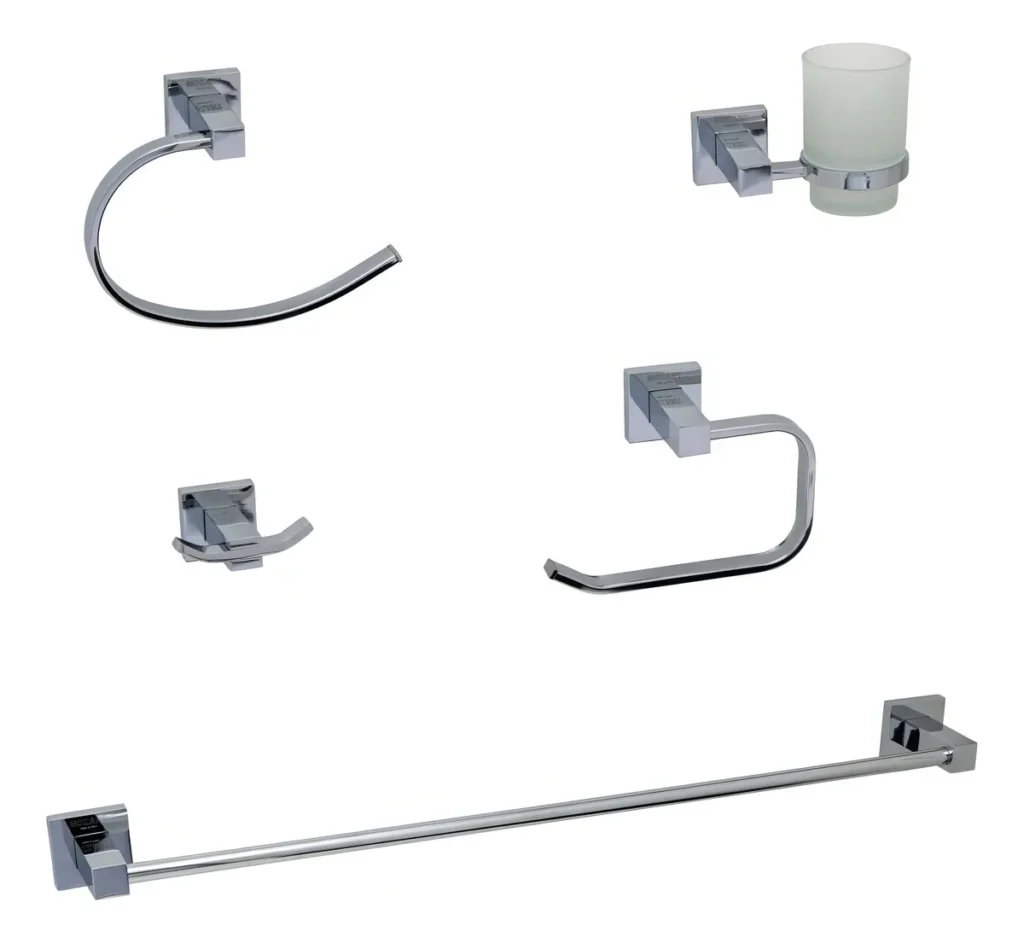 Kit Accesorio Baño Acero Inoxidable 5 Piezas Mozart Panamá Color Cromado 9581