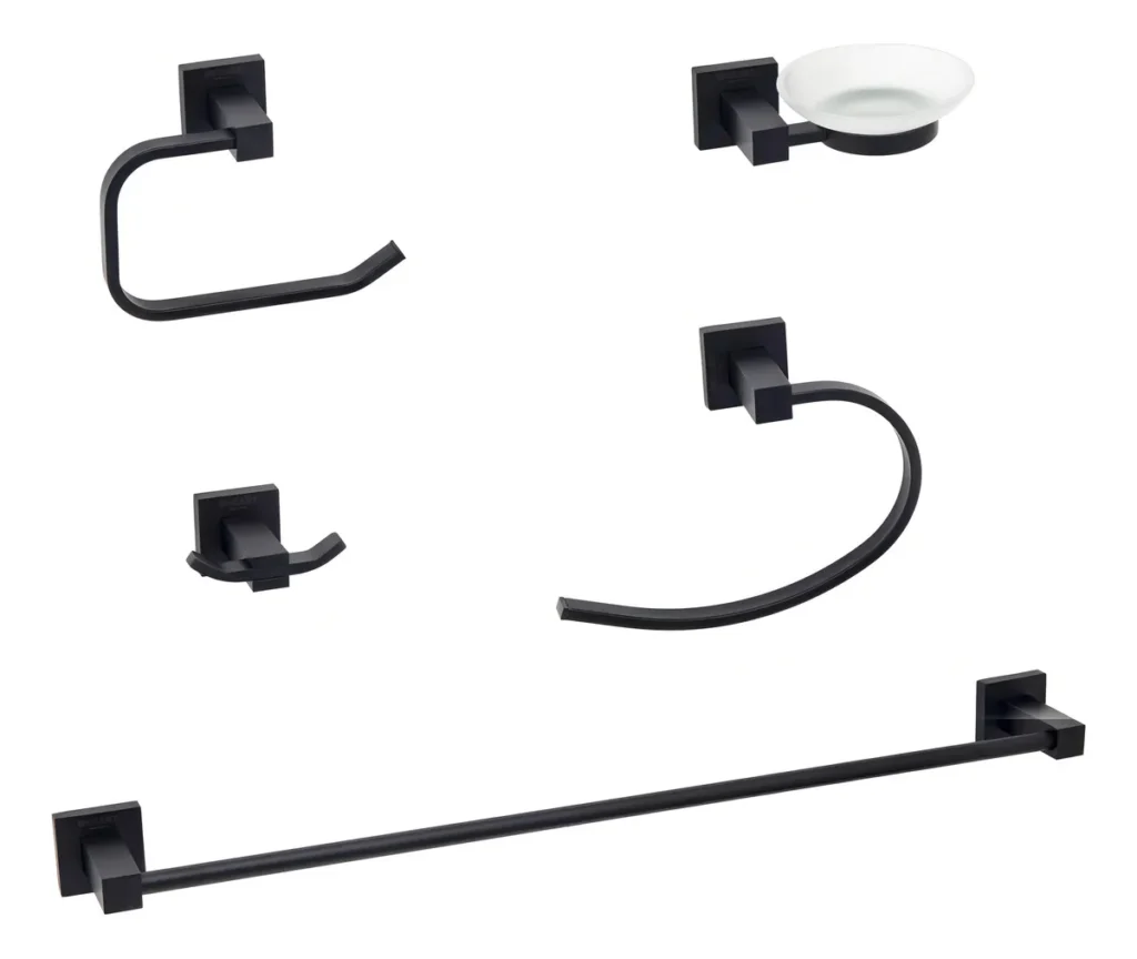 Kit Accesorio Baño Acero Inoxidable 5 Piezas Mozart Panamá Color Negro 9320